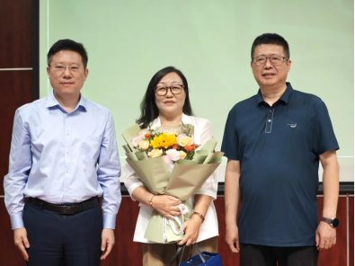 为感谢学院张荣凤老师数十载如一日对学院行政工作与后勤保障的支持,李汉军和嵩天为荣休教师献花赠礼,感激其辛苦付出与耕耘。