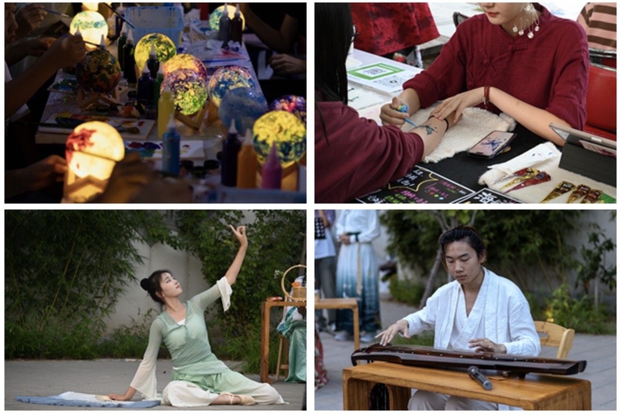 “雅集”乃中华源远流长之风雅聚会,此次北湖雅集共设置十个打卡点位,分别是朱钗粉黛、海棠市集、茗香品茶、廊桥灯谜等,复现了“香、茗、琴、诗、书”等中华古典文化元素。师生们通过观赏古琴、歌曲、茶道、舞蹈等节目表演,体验诗词、灯谜、漆扇、怀旧游戏等活动项目,感受传统文化的博大精深,共度难忘的中秋佳节。现场各式各样的汉服、灯笼等元素,更添古色古香之韵,为师生们营造了一个难忘的中秋古韵之夜。