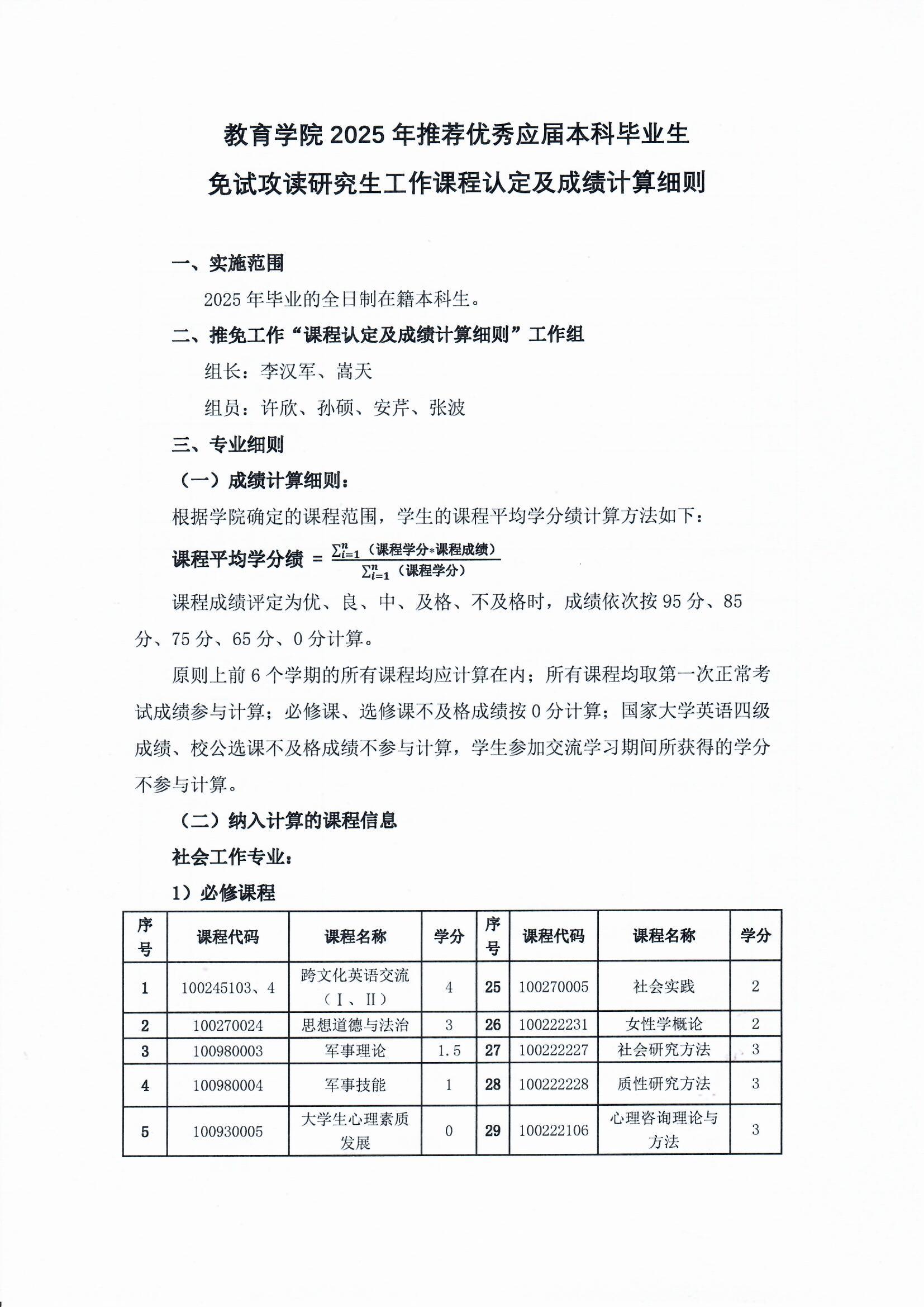 教育学院2025年推荐优秀应届本科毕业生免试攻读研究生工作课程认定及成绩计算细则